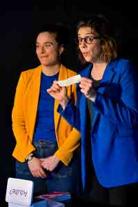 Sur scène, Céline et Solline, un duo drôle et soutenant qui donne pour la première fois une formation pour devenir un adulte inspirant pour les enfants.
